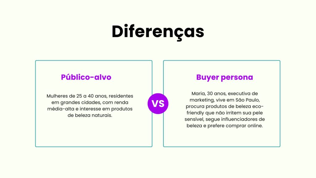 Então, a buyer persona seria o meu público alvo? A resposta é: não! A Buyer Persona e o público-alvo são conceitos relacionados, mas não são a mesma coisa. O público-alvo é uma segmentação mais ampla e geral de consumidores que compartilham características demográficas, comportamentais e sociais. Por outro lado, a Buyer Persona é uma representação mais detalhada e específica de um cliente ideal dentro desse público-alvo, com base em dados reais e insights mais profundos.
