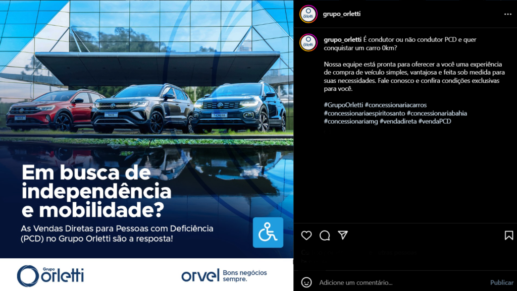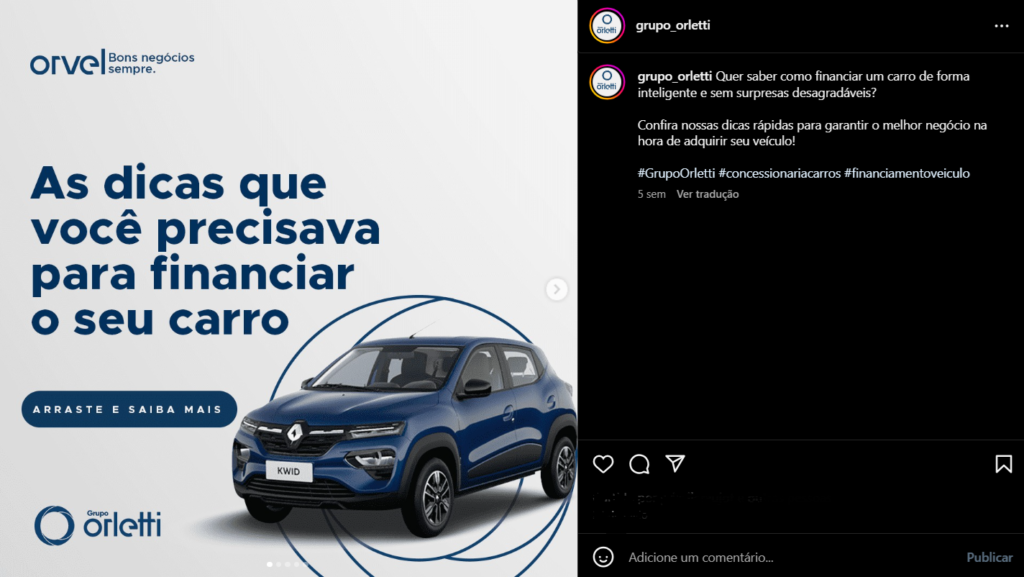 Para ilustrar com exemplos reais, destacamos um de nossos clientes, o Grupo Orletti. A marca possui uma Brand Persona com um tom de voz informativo e inspirador, além de inclusivo e encorajador. Em nossas comunicações nas redes sociais, seguimos essa abordagem. Veja alguns exemplos: